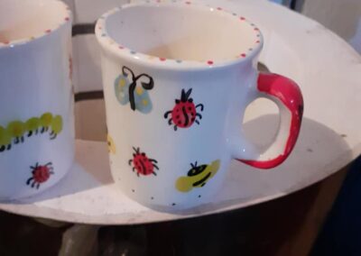 Ready-made items from our catalogue need to be chosen no less than one week before the event. If there is a specific theme, options can be discussed. We bring the selected items and paints, etc. to the venue. After painting the items, they are returned to the studio to be glazed. The finished products are then ready in a week.
