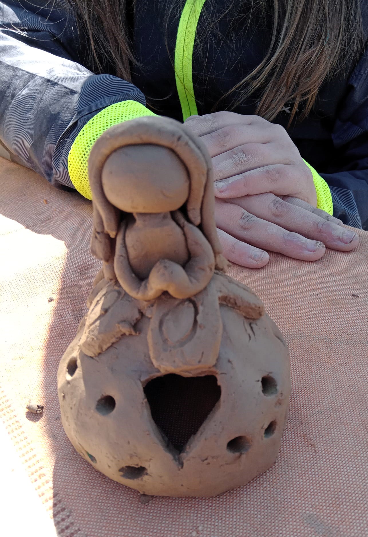 The lesson is spread over 2 classes, a minimum of 4 days apart, for the clay to dry before being fired.